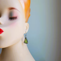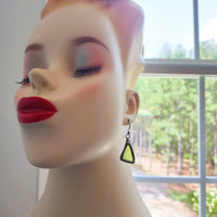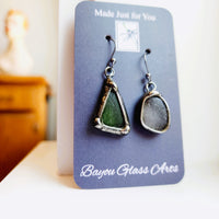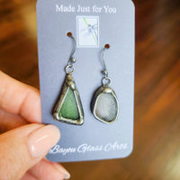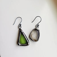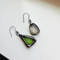 - Asymmetrical Earrings: Green Dangle: 1 3/4 inch drop from lobe White Dangle: 1 1/2 inch long from lobe