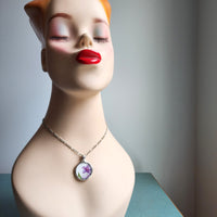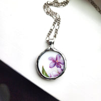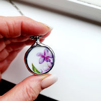 Wild Violet Pendant, Repurposed Broken China Plate turned Pendant Necklace