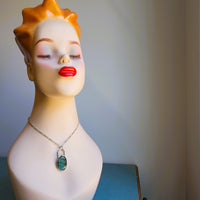I use the stained glass Tiffany style method of copper foiling glass, gemstones and vintage items, I then free form copper and hand solder various metals, (tin, copper, silver, brass) then apply patina and finish with a hand polish.